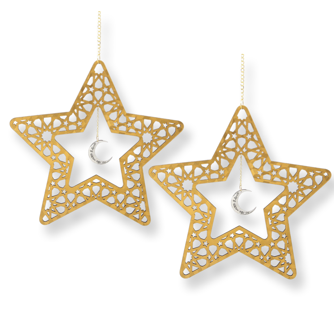 2 ST Hängdekor stjärna & liten måne med guldkedja