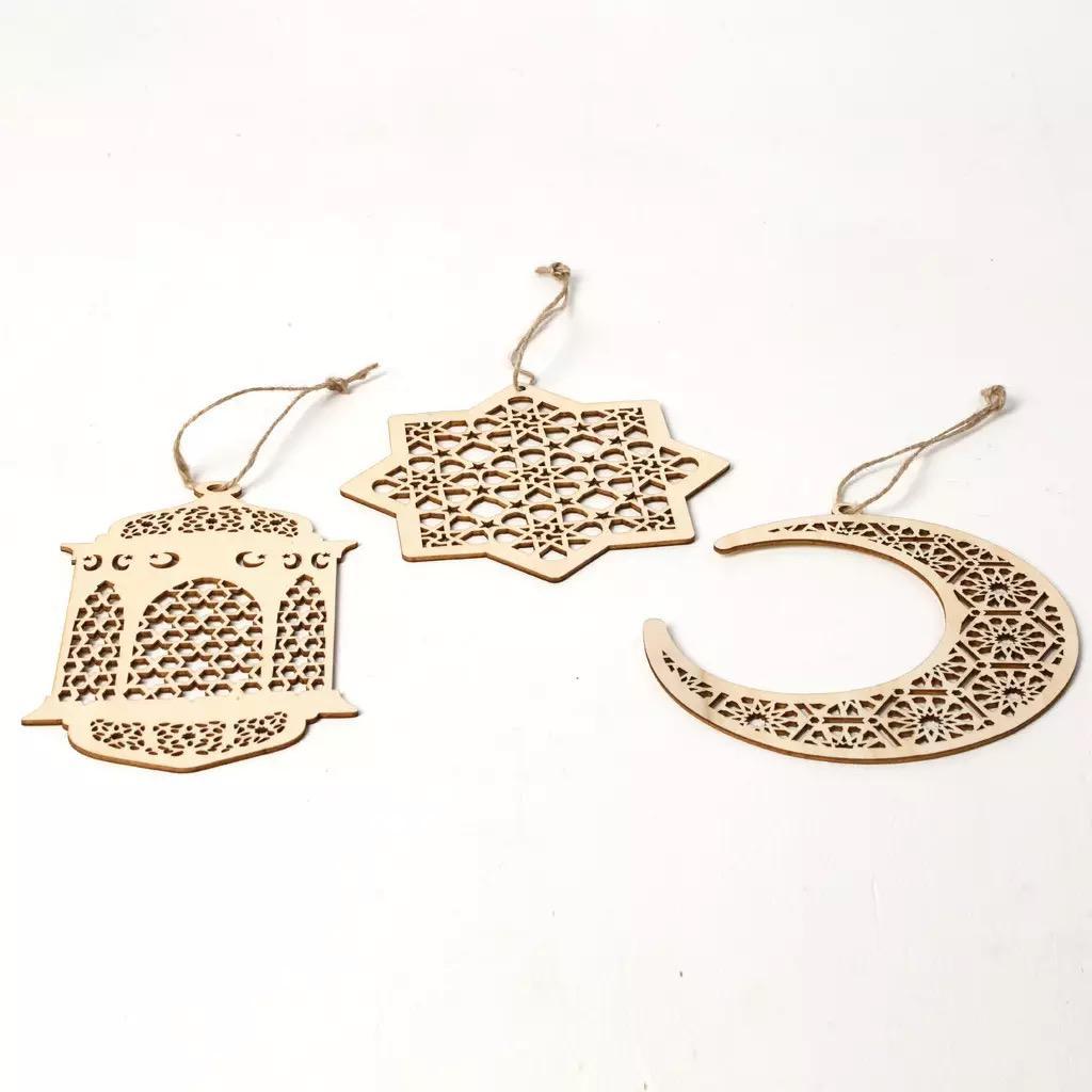 3st hängdekorationer i obehandlat trä, går att måla i valfri färg med tex sprayfärg eller hobbyfärg.
