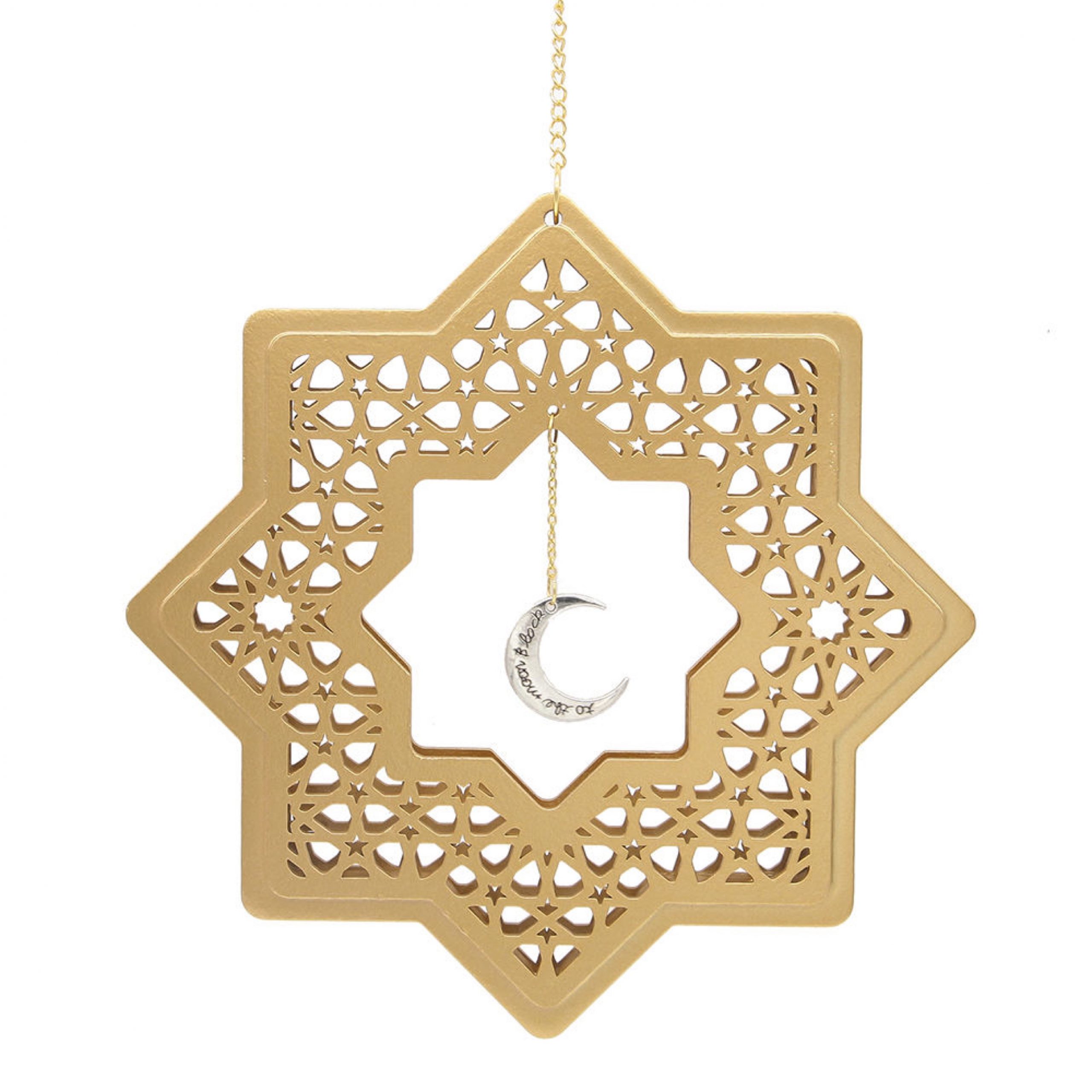 Hängdekor 3D stjärna & liten måne med guldkedja