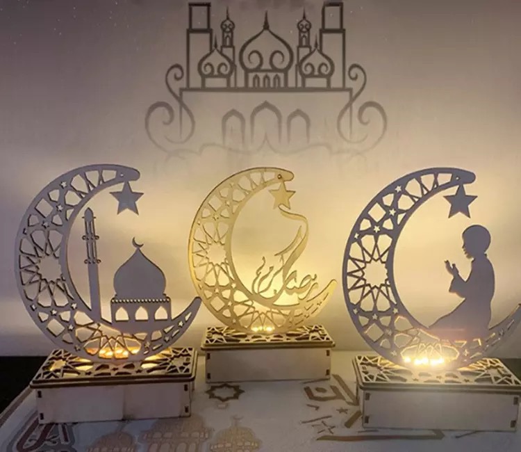 Liten månelykta i obehandlat trä.